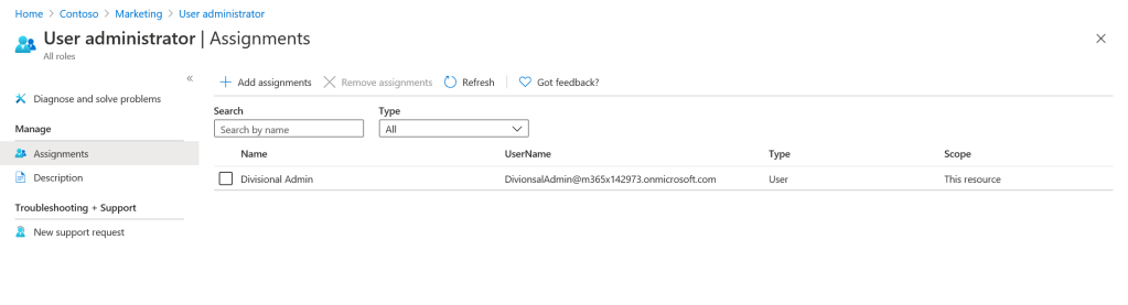 When we use AD Connect and local Active Directory as our identity source, we can use delegated permissions to provide a lot of the required access. Couple this with some cool features like group-based licensing and we can effectively delegate management to local or divisional IT support.