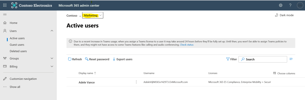 Once complete, our administrator can log in to the Admin Portal and only see the Administrative Units they have been assigned.