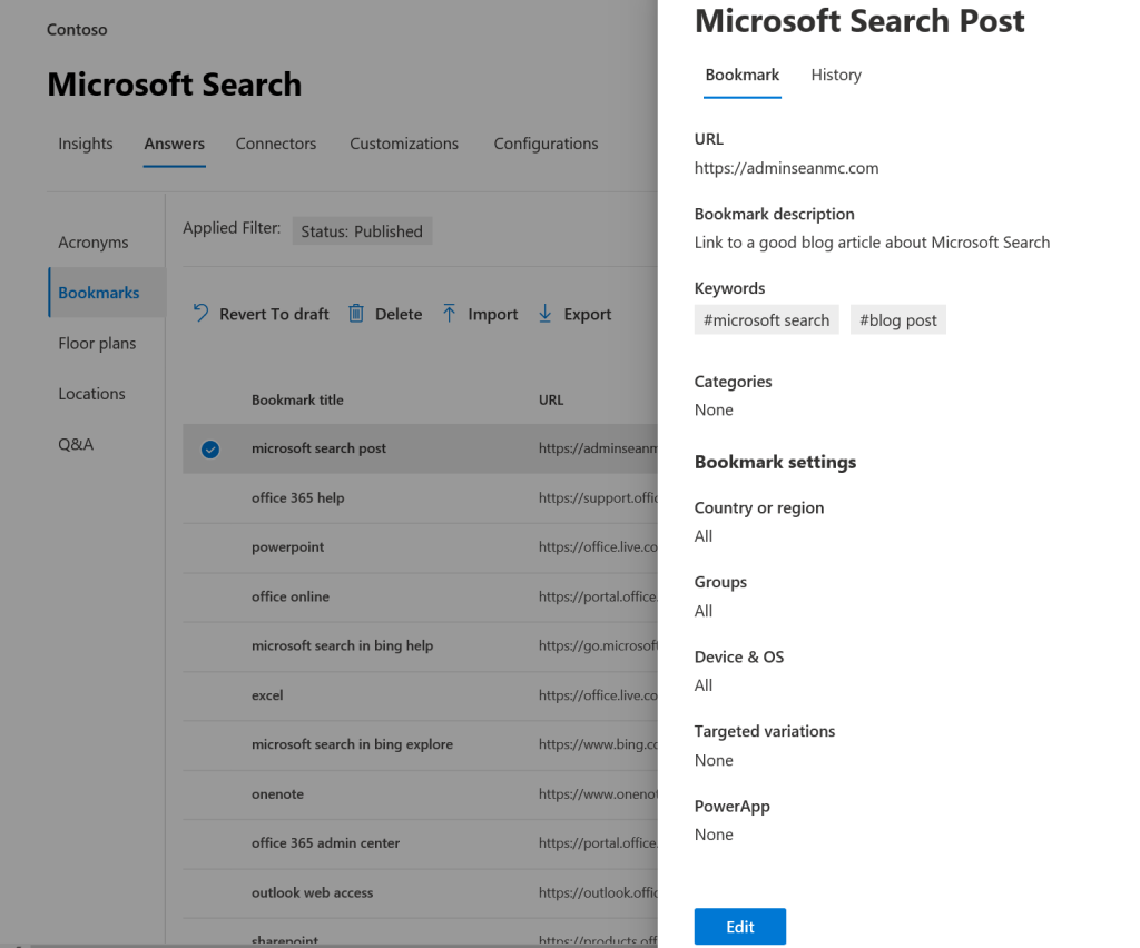 We can even enhance some of our options by linking to PowerApps, external sites and scoping the results to specific user groups.