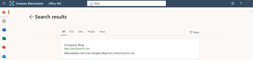 That’s really cool, our users can search in the Office Portal but it could probably be fancier. This is where Edge (Chromium) comes into play. The built in Microsoft Search functionality allows these result to surface as part of a regular web search: