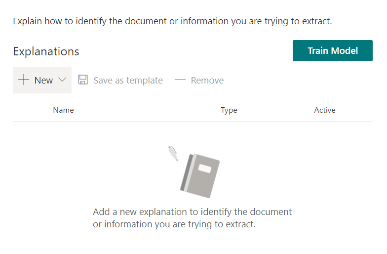 When all of our extractors are in place, we train the model once more, we will see all of the explanations we added for our extractors are also added to the model to help with identification of data.