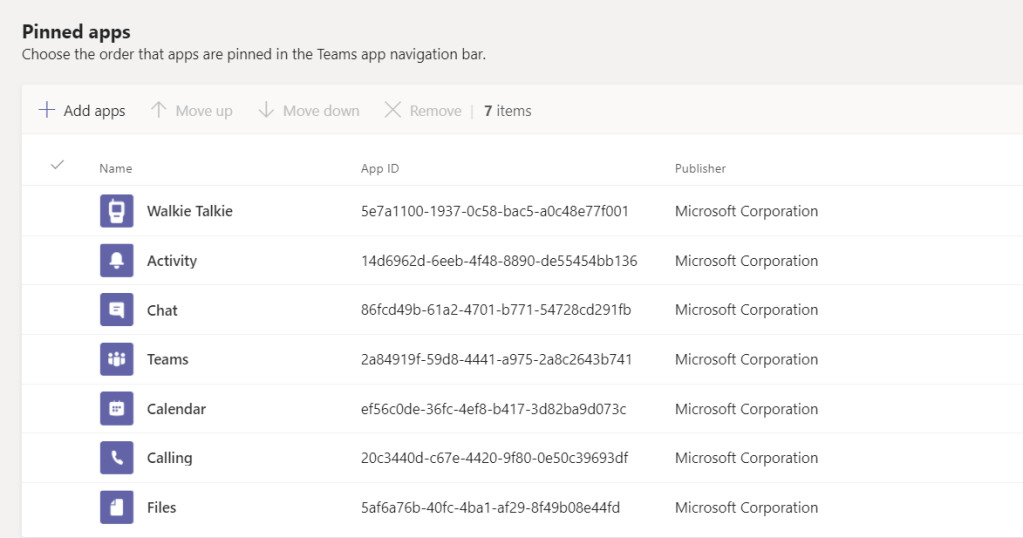 To deploy Walkie Talkie, we can create an App Setup Policy and deploy to the users we want the app available to. We add it into the pinned apps and deploy the policy to whoever needs it.