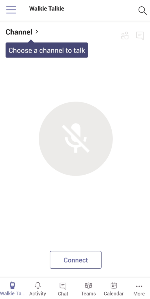 Using Walkie Talkie is very easy. Simply open the Walkie Talkie app and select that Teams Channel we want to talk in.
