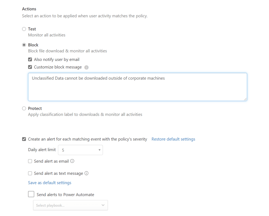 We could also take extra steps such as automatically apply protection to the data or link to a PowerAutomate flow for alerts.