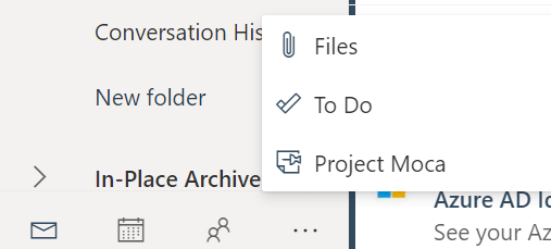Once it is enabled, you will find Project Moca in Outlook on the Web from the Outlook module switcher at the bottom left: