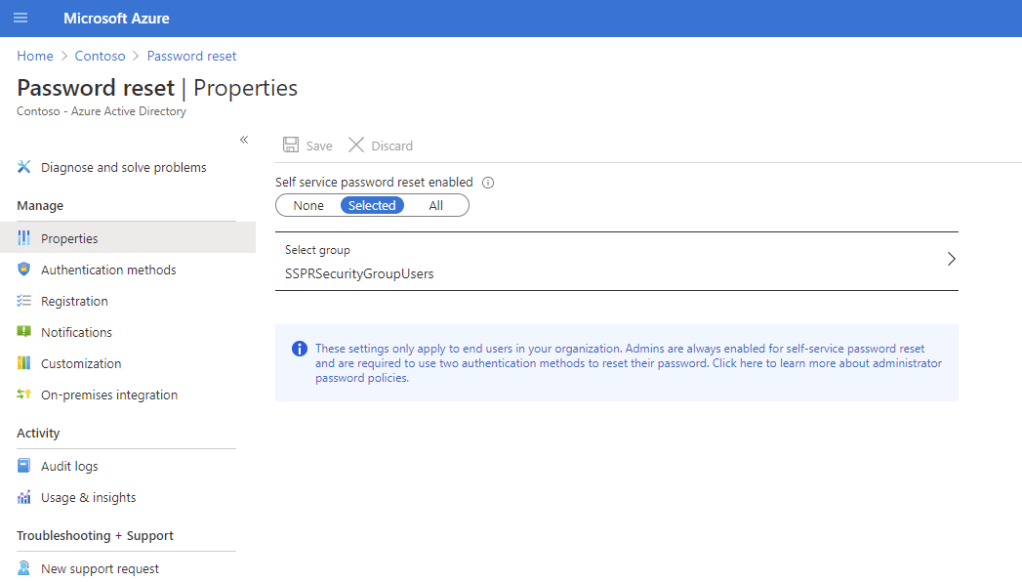 First we need to configure our scope, keep in mind that an Azure AD Premium license is required for SSPR and on-premises writeback.