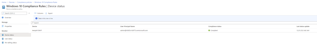 With our policy configured and applied, we can see that one device has been assessed and is compliant – cool.