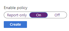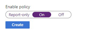 Make sure to change the enable setting to “on” from “Report-Only” for testing and then hit create. In a real-world scenario, I strongly recommend using report-only mode first.