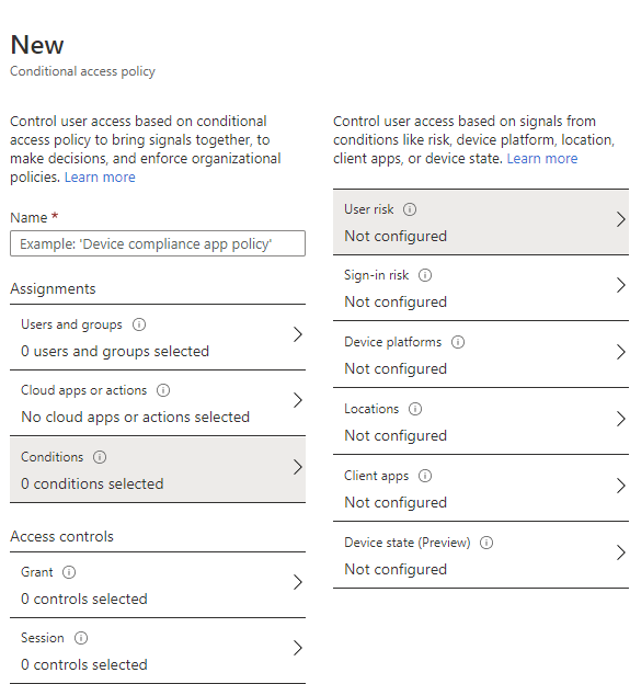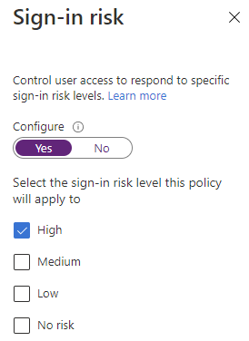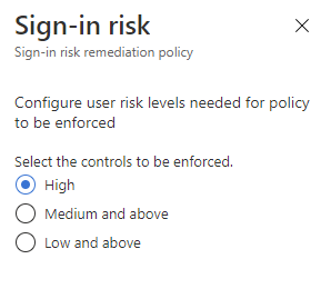 - Sign-in risk policy – On this page you can configure your Sign-in risk policy