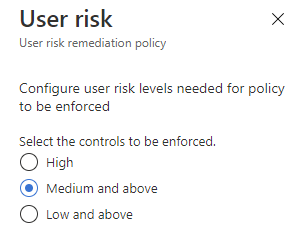 - User risk policy – On this page you can configure your User risk policy