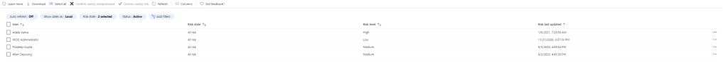 - Risky users – This report lists detected risky users