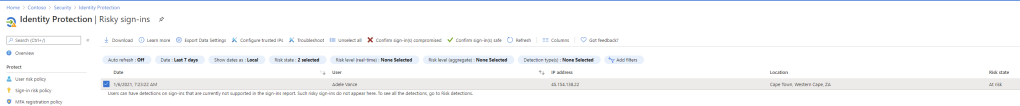 - Risk detections – This report contains all risk events