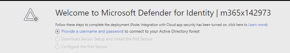 The first step in configuring MDI, is to enable the MDI instance for your tenant. The MDI portal is located at https://portal.atp.azure.com