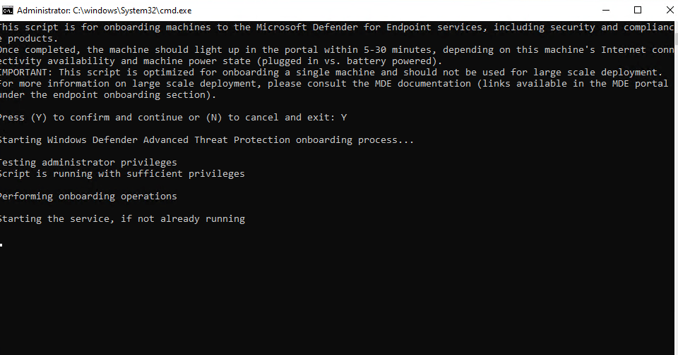 To Onboard a device to Defender for Endpoint, navigate to the Onboarding page and select the onboarding method. We detailed the different methods in the previous post. For our test we will use a local script to onboard a standalone device. Click “download package” and copy the files to the target machine.