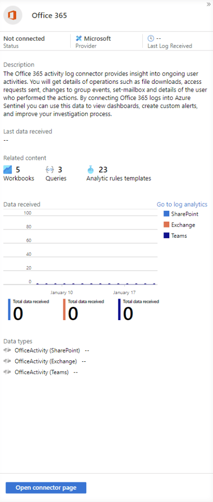 We can also add more connectors while we are here. I’ve added the following connectors to help monitor our Microsoft 365 environment:
