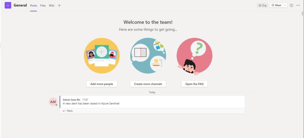 Once our test playbook runs, we can see that our message was posted into the Teams channel we specified, great! This is a very basic playbook with not much real world benefit but we can get much more complex through Logic Apps to automate some really cool functionality.