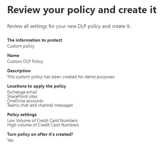 Now that we’ve created our DLP policies, tested them out and even created our own custom sensitive information types, in the next post we will move on to monitoring and managing DLP alerts. For more information around what was covered here, check out the below links:
