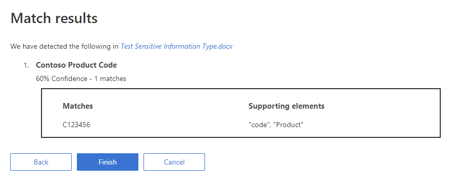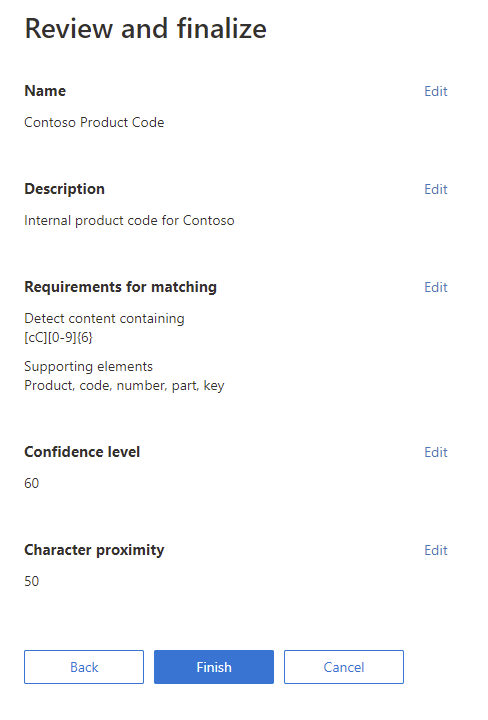 Once we are happy with our Sensitive Information Type, we can hit finish and start using it in our policies and labels.