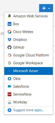 AWS | Box | Dropbox | GitHub | GCP | Google Workspace | Office 365 | Okta | Service Now | Salesforce | Webex | Workday | |