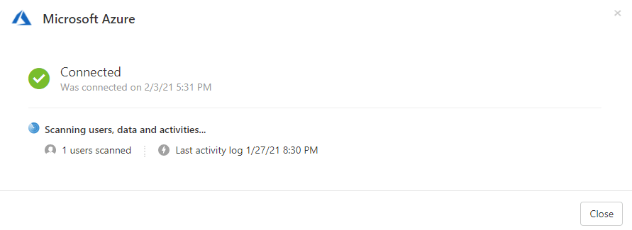 For Azure, click on “Connect Microsoft Azure” to connect the app and MCAS will begin pulling data immediately.