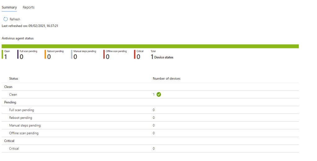- Microsoft Defender Antivirus – This report shows us the Defender for Endpoint status of our enrolled devices. Showing if any items such as scans are pending. We can also report on the Antivirus agent status and Detected Malware