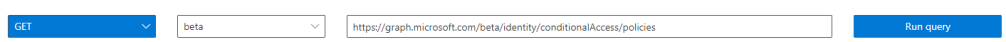 To run a query in Graph Explorer, let’s take for example the “get all Conditional Access Policies query. Click the sample query to copy it to the query bar at the top. Here we will see the URI needed to query all Conditional Access Policies.