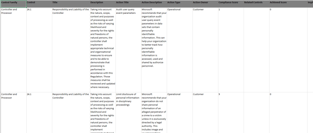 We can view the controls that we need to comply with based on the regulation the template is based on.
