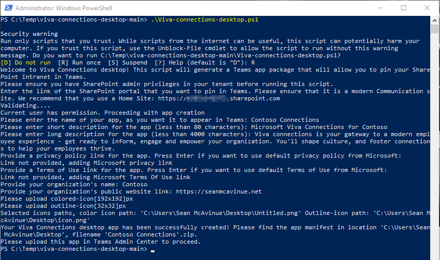 - Download the Viva Connections for Desktop PowerShell Script