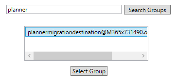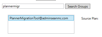 To select the Plan we want to migrate, search for the email address of the group containing the plan in the “Search Groups” dialog, click on the group you want to select.