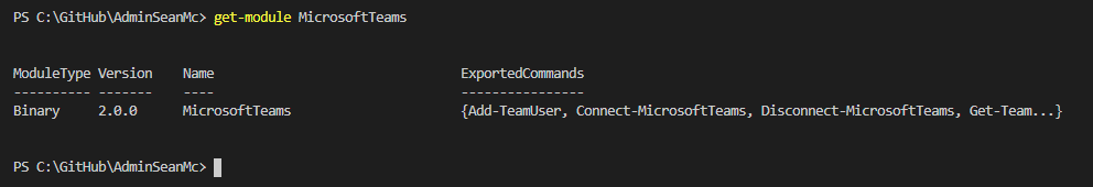 Get-Module MicrosoftTeams