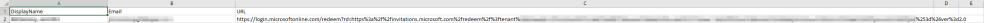 When the script runs, all of the Guests should have accounts in the destination tenancy but will not have received an invitation yet. The script will also output a CSV with the Invitation URLs for each user which can be used to send the invitations later. The file should look similar to Figure 1 below.