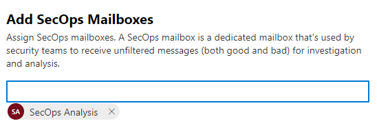 For SecOps mailboxes, an internal mailbox is added to allow unfiltered messages to flow to this mailbox only. This means that security teams who want to analyze blocked or flagged mails can do so without Defender blocking the content.
