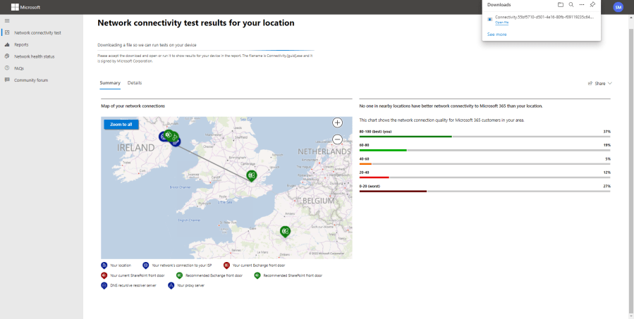 Assess network readiness by using Microsoft 365 network connectivity test and dashboard