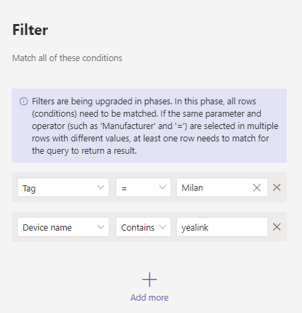 With tags assigned, devices can be filtered by their respective tags using the TAC filter option as shown in Figure 5. In this instance, I am filtering for all Yealink devices with the tag Milan assigned.
