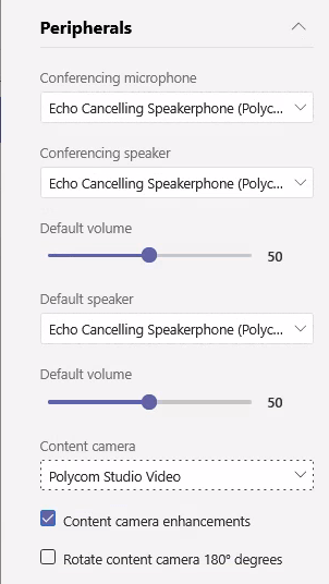 Settings and firmware/software updates are also managed easily directly from the TAC. To modify the settings of a particular device, simply select it from the device list and click Edit Settings on the top bar. An example of the settings that are configured from the TAC is the peripherals of the device. We can remotely configure which peripherals are used and the default volume settings for each as shown in Figure 6.