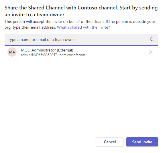 Sharing a channel can be done by sharing with individual users or Teams. You can directly add to a Team you already own but to share with another Team, including external, you will need to specify a Team owner (Figure 5).