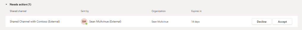 The receiving Team owner will get a notification in Teams to make them aware of the invite. From here they can accept or decline the invitation as shown in Figure 6.