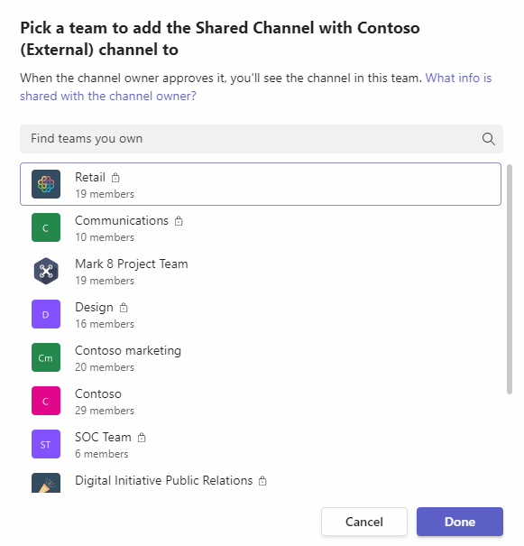 Upon accepting the invitation to the Shared channel, the owner is then asked which Team they would like to add the channel to (Figure 7).