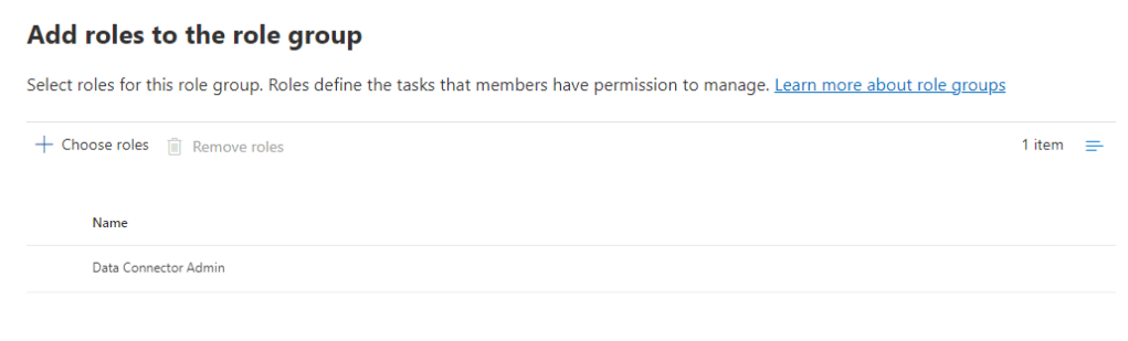 The Data Connector role is already added for any Global Admins so if your are logged in as such, this step can be skipped. If you don’t have the Global Admin role assigned, an admin will need to grant you a role group with the Data Connector Admin role as shown in Figure 1.