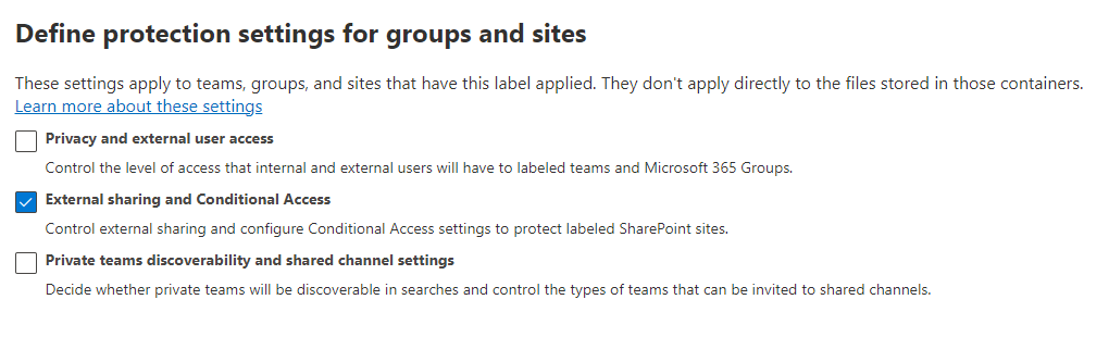 On the protection settings page, select “External sharing and Conditional Access” (Figure 4).