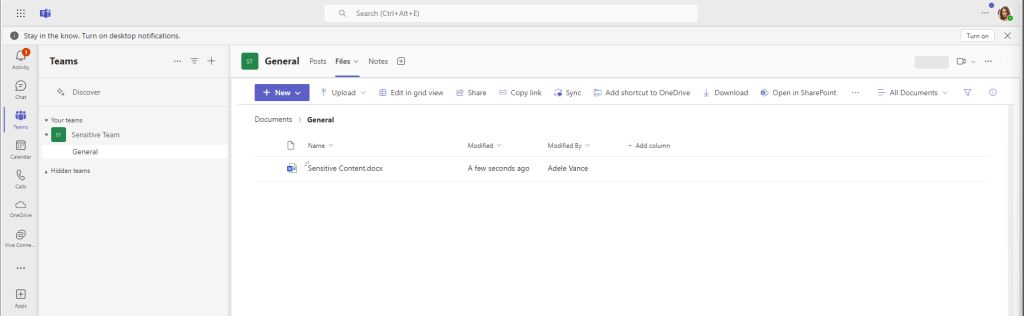 Next, log in as one of the Team members that isn’t blocked by the Conditional Access policy to make sure everything works as expected. In Figure 10, I’ve logged in as Adele and confirmed she can access the Team with no issue.