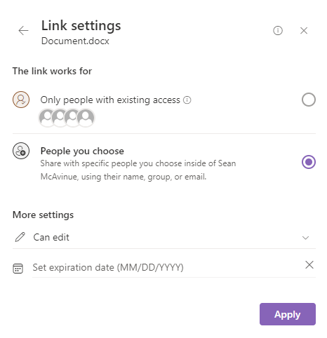 When a site has this setting updated, users will no longer see the ability to create org-wide links when sharing files as shown in Figure 3.