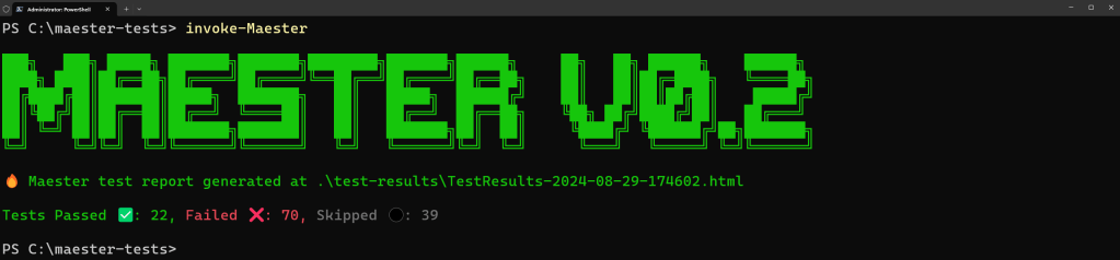 The documentation for Maester (available here) is excellent. There is a clear installation guide which I won’t look to reproduce here. In short though, Maester is installed as a PowerShell module and then you can install a suite of default tests to get started.